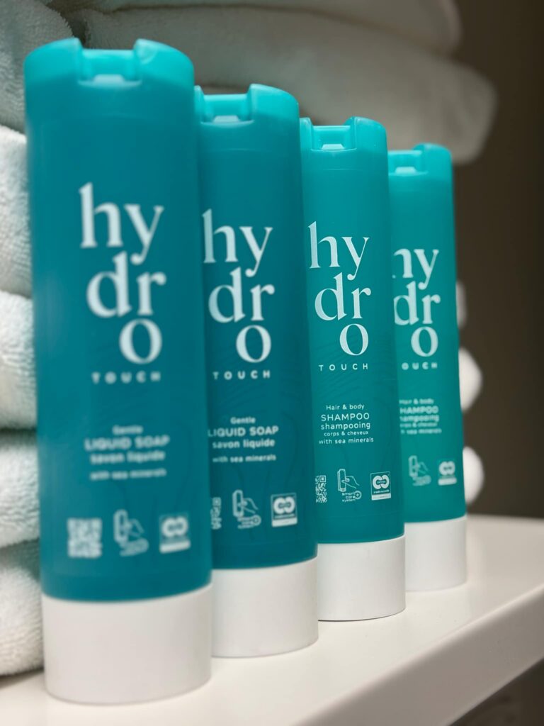 - Me ei kasuta ühekordseid pesuvahendipudeleid – kõigis tubades on šampoon ja dušigeel taaskasutatavates dosaatorites, mis vähendab plastjäätmete hulka.